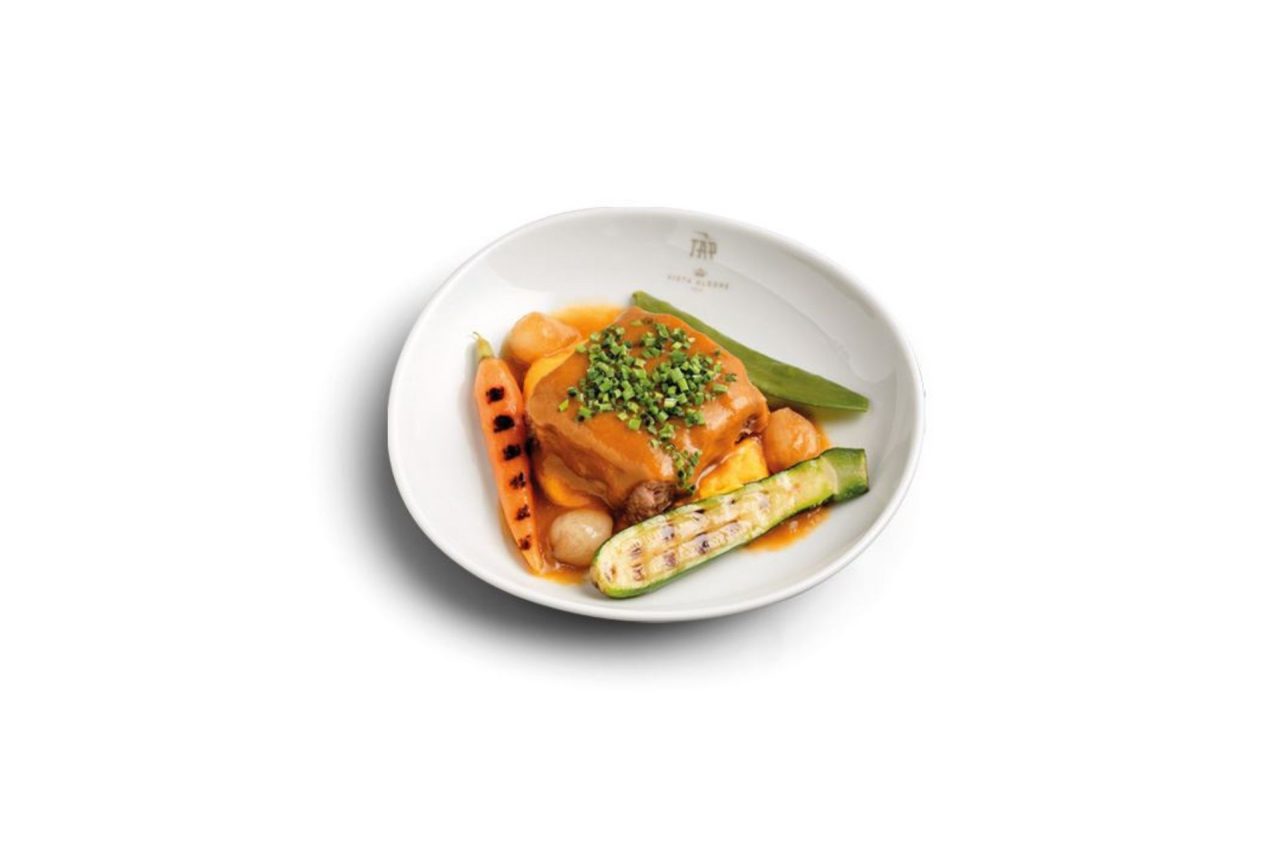 Situada no litoral Oeste a Sul de Lisboa, da Península de Setúbal sobressai o Moscatel de Setúbal, o produto escolhido pelo chef André Cruz tendo em conta a sua relevância para esta região vitivinícola de Portugal, caracterizada por uma grande diversidade geográfica. Com um clima misto, sub-tropical e mediterrânico, influenciado pela proximidade do Oceano Atlântico e dos rios Tejo e Sado, é nestas terras que se produz este vinho generoso de castas moscatel, reconhecido pelas Denominações de Origem Controladas “Setúbal”. Com um aroma intenso a flores de laranjeira e um sabor meloso e cheio, este vinho evolui com a idade para notas de frutos secos, passas e café. E, é com base nesta excelência, que o chef André Cruz preparou o menu, que tem como entrada uma Salada de atum, pickle de cebola de Setúbal, tomate e rabanetes; de prato principal, Ossobuco de vitela, molho de Moscatel de Setúbal, puré de cenoura e legumes Primavera; encerrando com um Pudim de leite de ovelha, vinagre de Moscatel de Setúbal e bolacha Piedade.